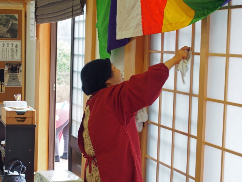 毎年この大掃除は二手に分かれて実施しています。ご婦人方には本堂の大掃除とお食事会の支度をしてもらい、殿方は大晦日の焚き火(本堂前の広場で派手にやります)の事前準備がメインの作業となります。焚き火用の木材は寺の山から間髪材を軽トラックで持ち出すのですが、昨日は冷たい雨でしたからそりゃ難儀でした。